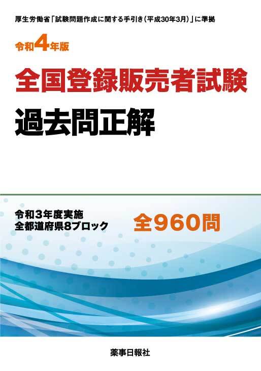 令和3年実施の全国登録販売者試験問題と解答に解説を加えた試験対策に最適な過去問集。